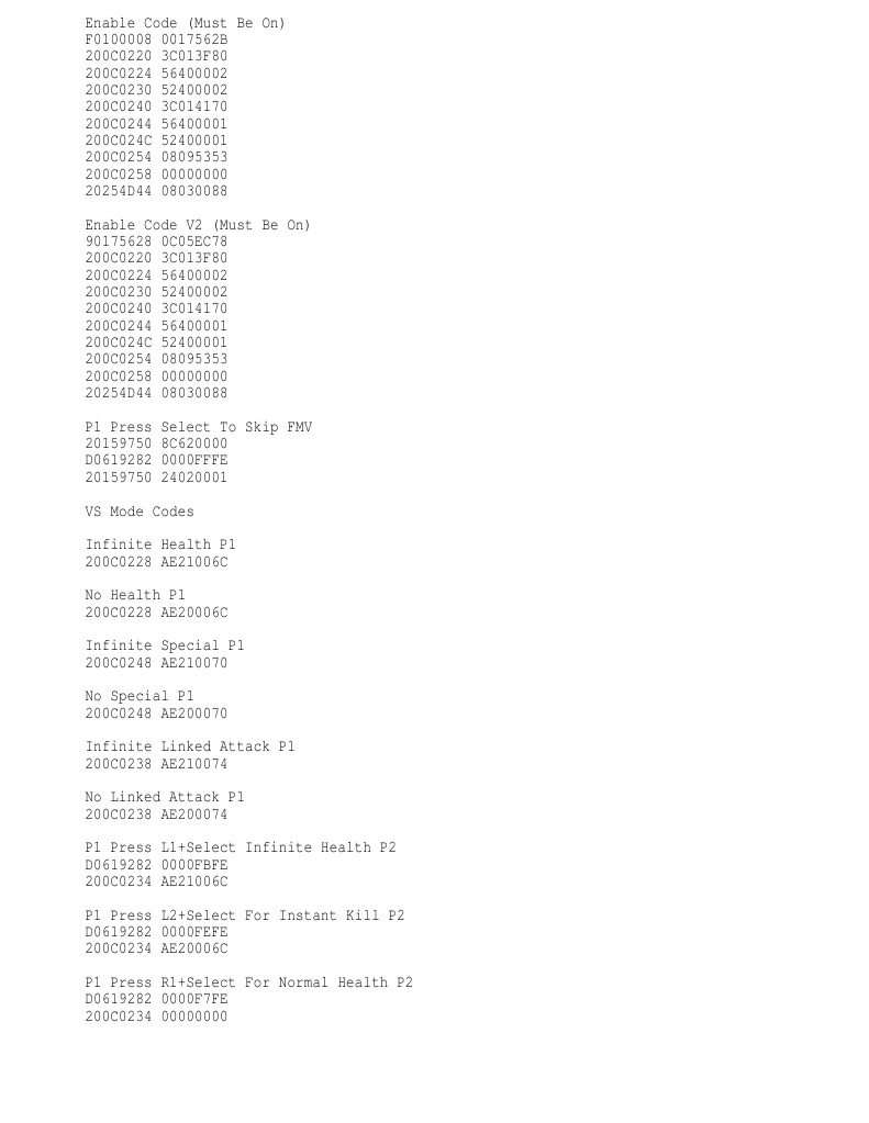 Cheats Naruto Ultimate Ninja 5 Ps2
