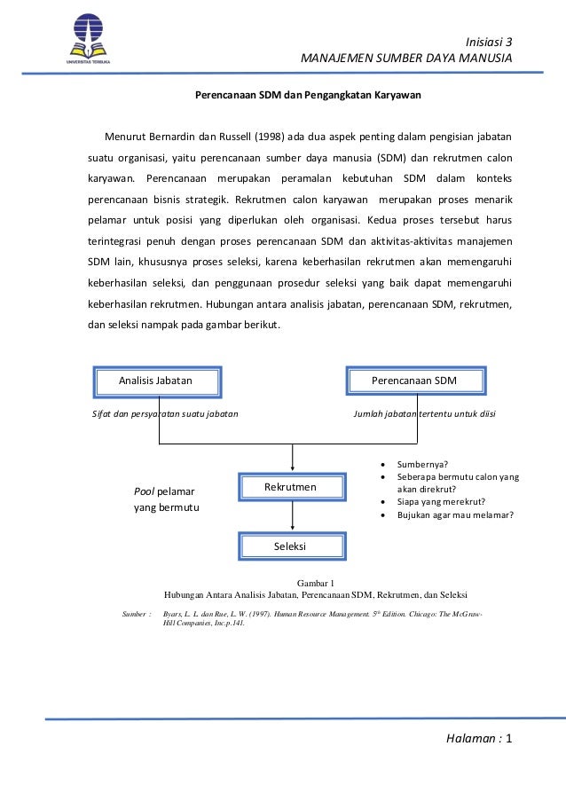 Urutannya dapat Anda lihat sebagai berikut. Mempekerjakan kandidat yang terpilih. 1 Perencanaan SDM dan Pengangkatan Karyawan Menurut Bernardin dan Russell 1998 ada dua aspek penting dalam pengisian jabatan suatu organisasi yaitu perencanaan sumber daya manusia SDM dan rekrutmen calon karyawan.