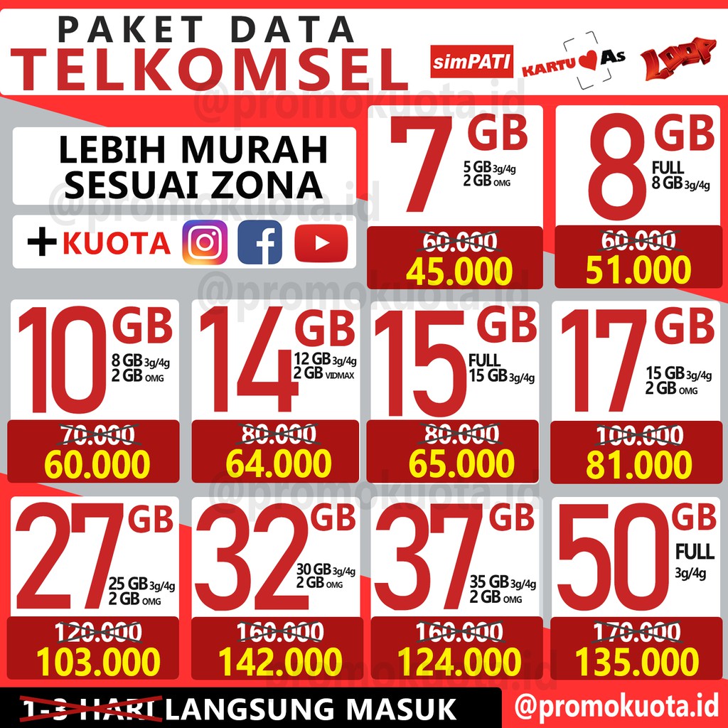 Promo tersebut berupa paket kuota sebesar 2GB sekalipun pulsa Anda hanya Rp 0. Karena pengguna akan mendapatkan bonus kuota gratis telkomsel terbaru sebesar 105Gb untuk satu bulan penuh. PAKET KOUTA INTERNET BULK TELKOMSELRp40000.