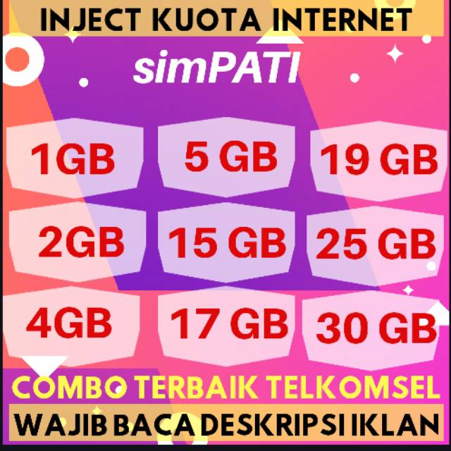 Kuota Telkomsel Paket Data Internet Simpati Combo Terbaik Sakti 15gb 50gb 52gb Shopee Indonesia