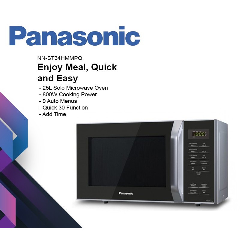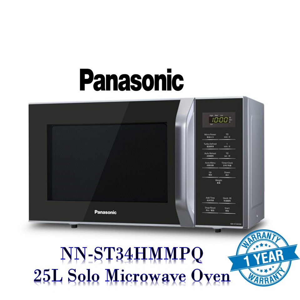 Specs - Explore the Panasonic 25L Microwave Oven NN-ST34HBMPQ. Bring home the Panasonic 25L Solo Microwave and simplify your kitchen tasks. PANASONIC SOLO MICROWAVE OVEN 20L NN-ST25JWYPQWhite.