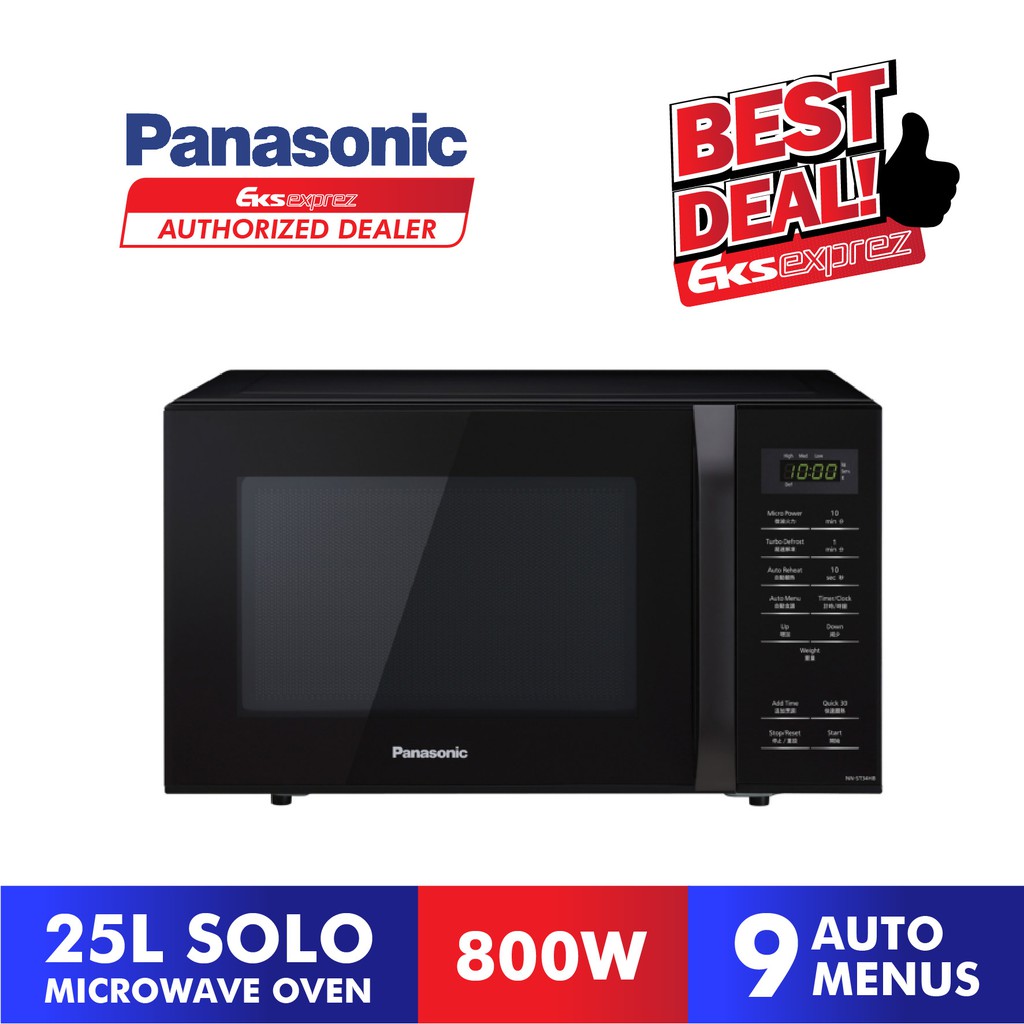 Panasonic 25l solo microwave oven nn st34hmmpq. Large 25l capacity 800W microwave cooking power 288Mm large turntable diameter. Explore the Panasonic NN-ST34 - Microwave Ovens - 25 L Solo Microwave Oven 800 W Cooking Power 9 Auto Menus Quick 30 Function Add Time. Visit the support page for this product.